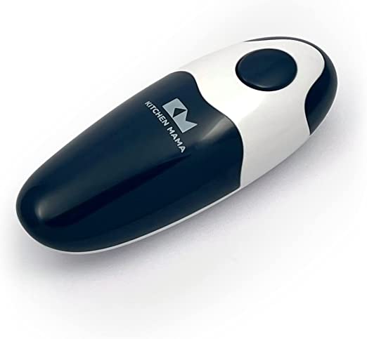 Kitchen Mama Electric Can Opener 2.0: Upgraded Blade Opens Any Can Shape - Smooth Edge, Food-Safe, Handy with Lid Lift, Battery Operated Handheld Can Opener (Navy Blue)