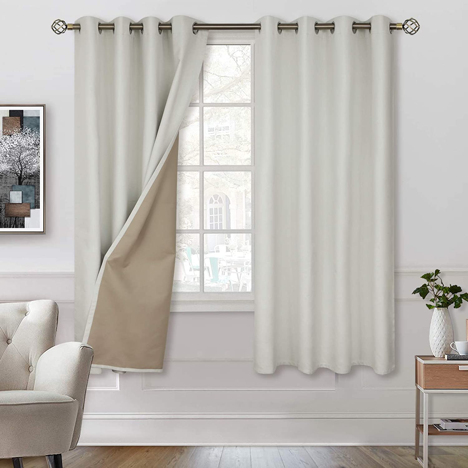 - Package Includes: Set of 2 ivory white faux linen blackout curtains with light khaki liner, thick, soft, luxury and heavy-duty; each panel measures 52 Inch wide by 63 Inch long.