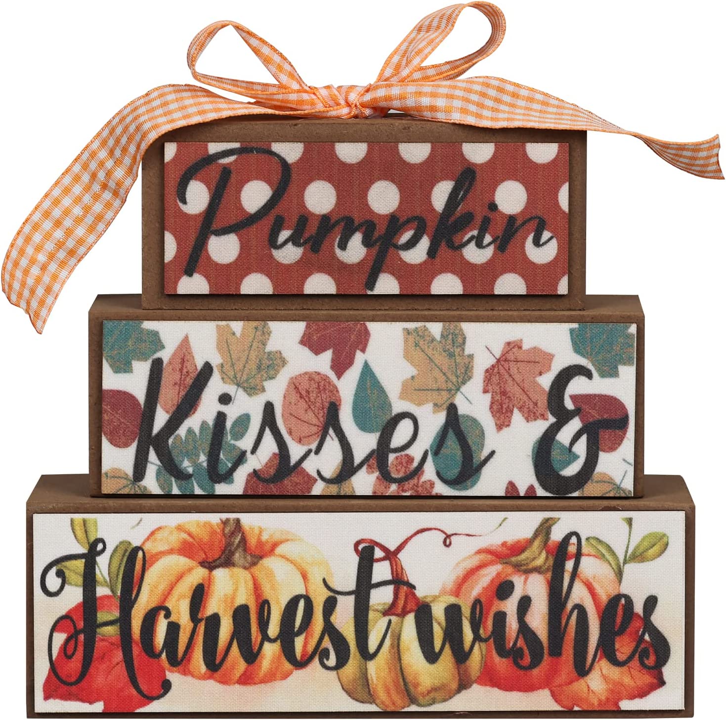 NEEDOMO thanksgiving decorations consist of three layers of wooden blocks stacked together with the letter "pumpkin". The fall decorations for home block is printed with various pumpkins, fall leaves and harvest lettered, which can make your home warmer and add more autumn atmosphere to your home. This fall decorations caters to fall festive theme and could definitely spice up your home!